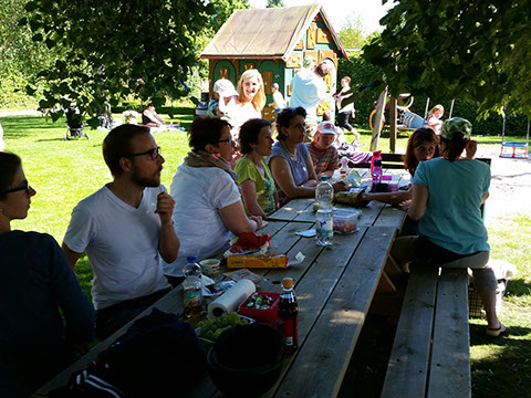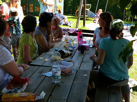 Bei herrlichem Sommerwetter und beladen mit kleinen Snacks und jeder Menge guter Laune haben wir uns im Freizeitpark in Neustadt bei Coburg getroffen. Diesmal besuchte uns die Musiktherapeutin Frau Gudrun Jensch. Sie berichtete uns ausführlich über die Möglichkeiten der Musiktherapie, welche durch sie angeboten wird.